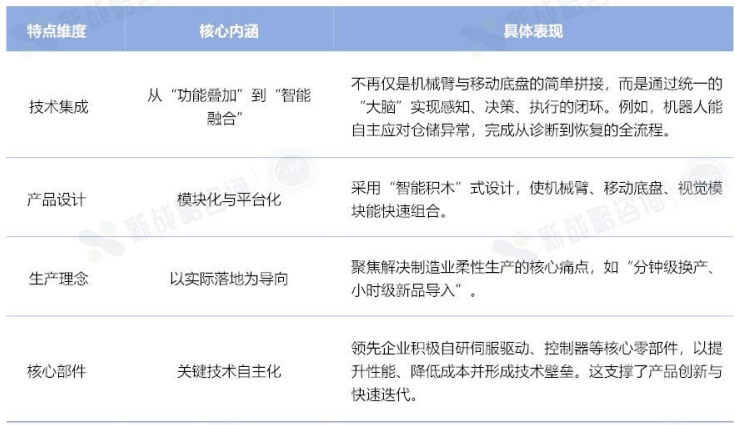 复合机械人是通过多功能模块集成(如挪动底盘、机械臂、传感器、未端施行器等)实现“挪动+操做+”协同的智能系统,同时定制化需求、成本压力、办事质量成为市场所作的焦点要素。国际巨头凭仗手艺堆集取品牌劣势占领高端市场,并连系高精度手臂取靠得住视觉,推出针对性的产物。除了表格中列出的较着特征。